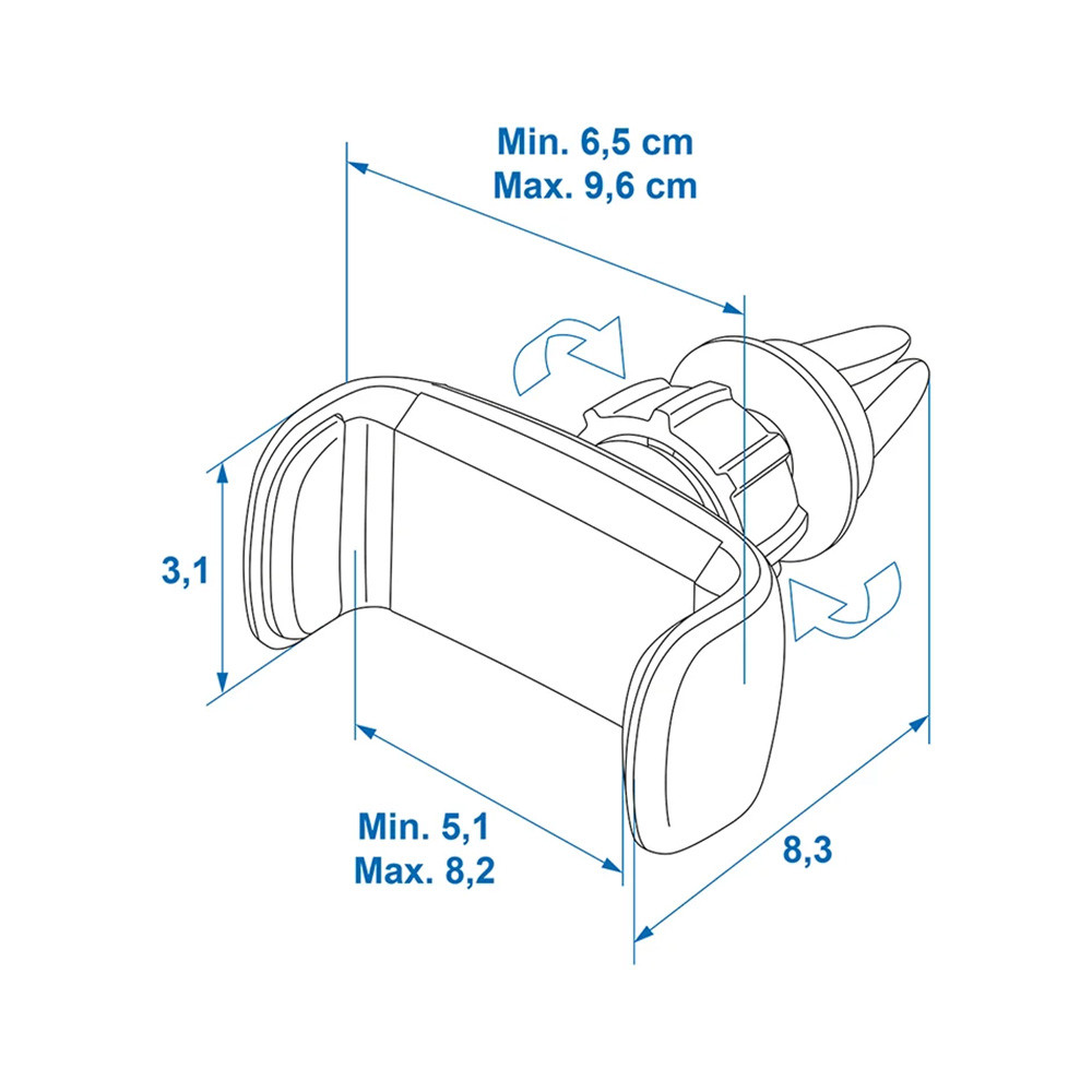 Ce support universel pour smartphone se fixe facilement sur la grille d’aération de votre véhicule. Grâce à son design compact et robuste, votre appareil reste bien en place, même sur les routes cahoteuses. Compatible avec la plupart des smartphones, il offre une position de vision confortable et sécurisée pendant la conduite.