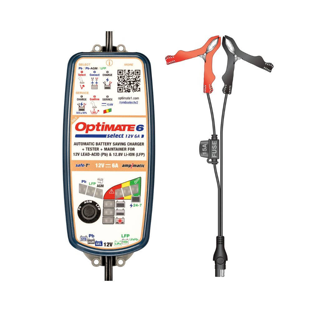 OptiMate 6 Select (version 2) est le chargeur de batterie 12V ultime capable de sauvegarder, charger, tester et entretenir tous les types de batteries 12V – Pb (plomb-acide), AGM et lithium LFP. Le chargeur OptiMate 6 est recommandé pour les batteries de voitures de sport, véhicules 4x4, tracteurs, camping-cars, bateaux et motos.