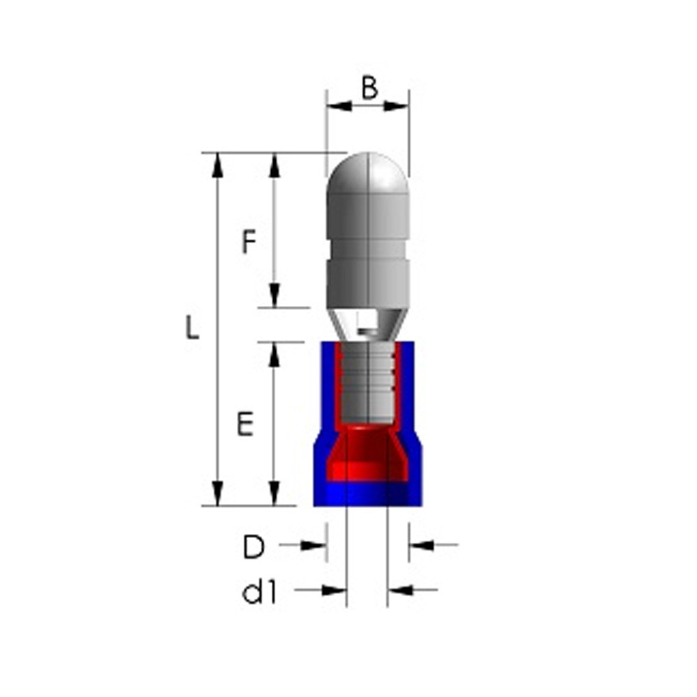 Ce connecteur rond entièrement isolé en bleu convient pour des câbles de 1,5 à 2,5 mm². La version avec connexion mâle et soulagement de traction assure une liaison solide et fiable.
