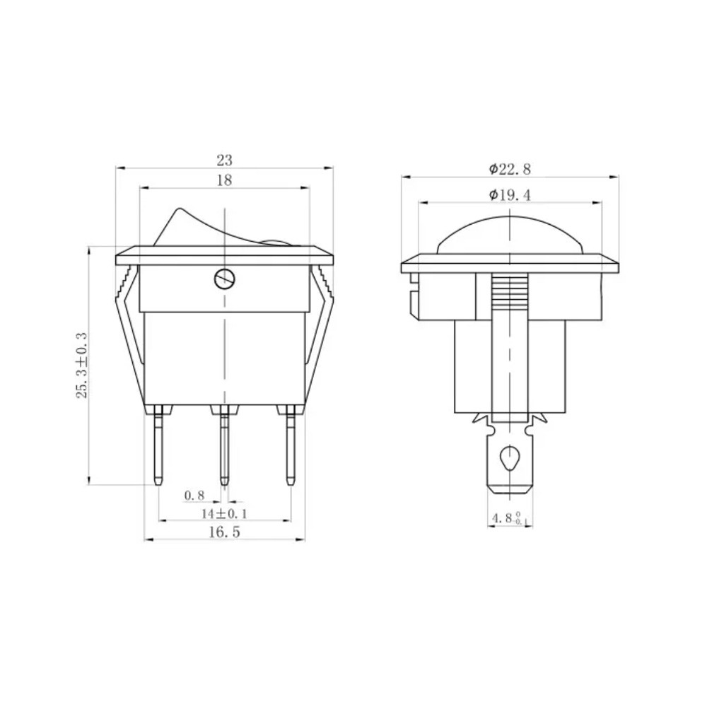 Le commutateur supporte un courant jusqu’à 16A et garantit un fonctionnement fiable dans différents circuits électriques. Il est idéal pour les applications nécessitant un format compact et un signal lumineux clair.