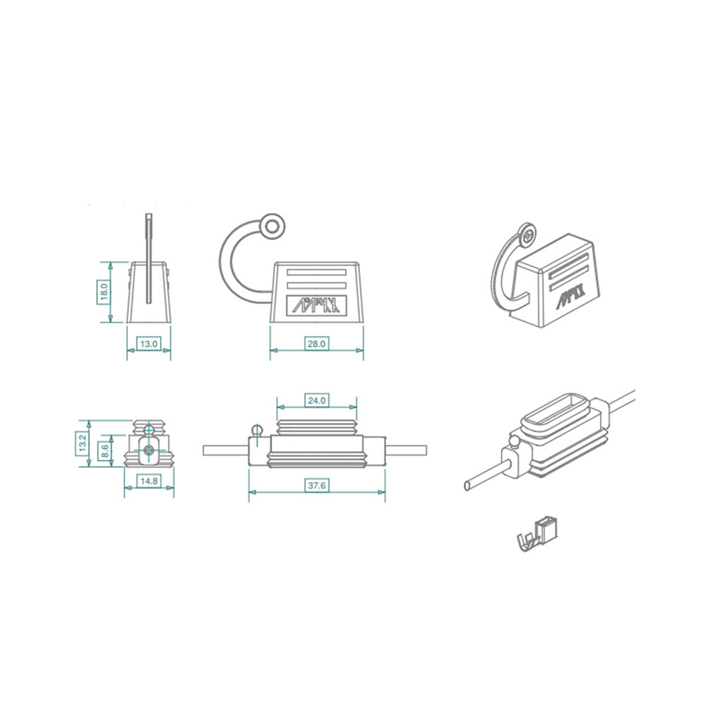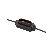 Le boîtier et le capot sont auto-extinguibles pour une sécurité renforcée. Le support est équipé de contacts de fusible type boîte en CuZn33, étamés pour une connexion fiable et durable. Câbles de 235 mm de chaque côté pour une installation facile.
