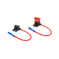 Le support est équipé d’un câble rouge de 1,3 mm² (AWG 16) d’une longueur de 120 mm et d’un connecteur bleu. Les contacts de fusible en CuZn sont étamés pour une connexion fiable. Le boîtier est fabriqué en matériau PA66 avec une classification UL 94V-0 pour la sécurité incendie.