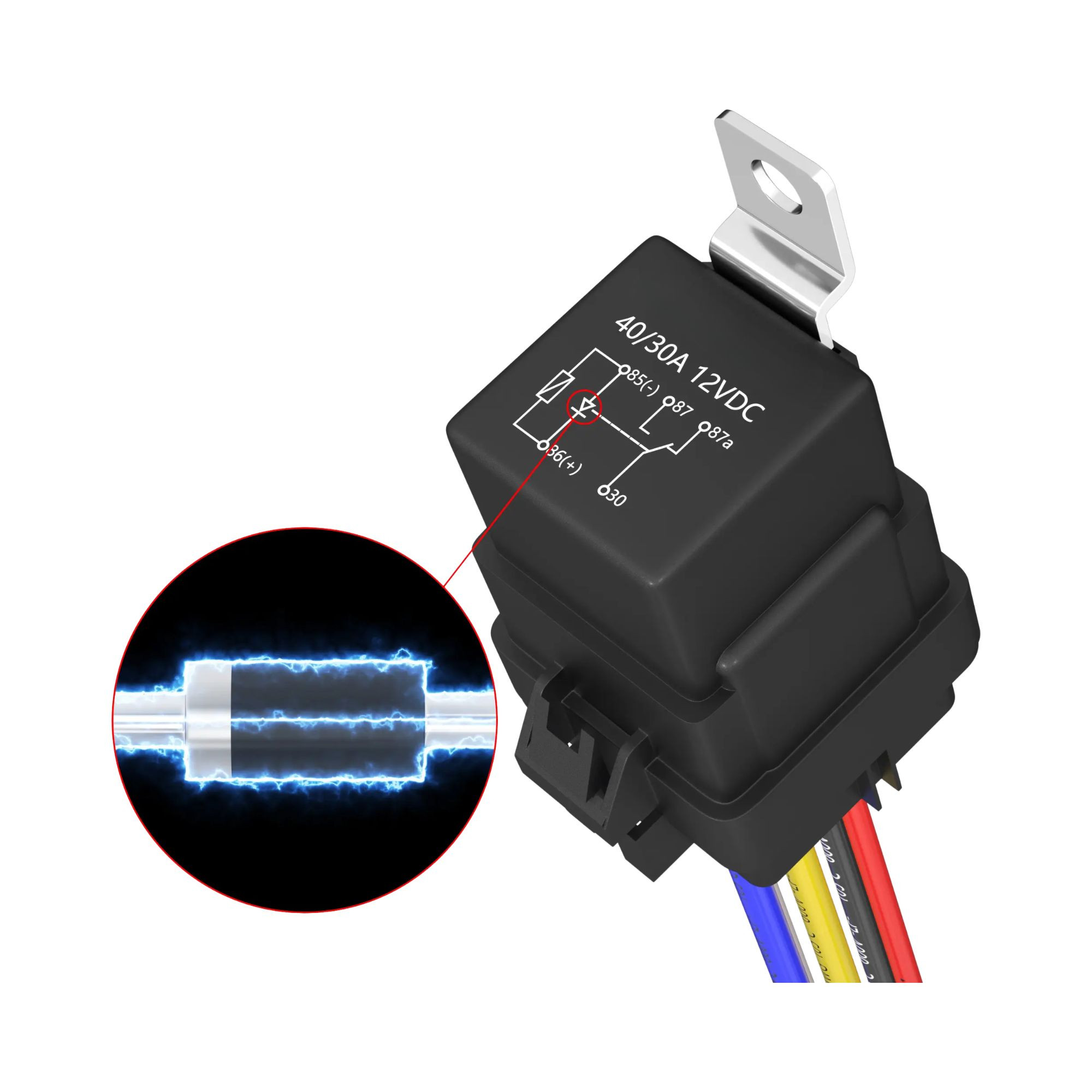 Relais 12V 30-40A 5 broches précâblé SPDT étanche avec diode