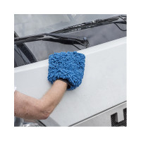 Gant de lavage en microfibre de couleur bleue, idéal pour nettoyer les véhicules en profondeur sans rayures. Les fibres douces absorbent efficacement la saleté et l’eau, tout en assurant une répartition homogène du shampooing.