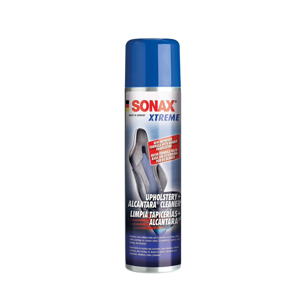 Nettoie en profondeur et en douceur tous les textiles intérieurs tels que les sièges, les tissus d'ameublement, les panneaux, la garniture de toit, les tapis, les housses de protection et les surfaces sensibles en Alcantara®. En même temps, le désodorisant inclus élimine rapidement et durablement les odeurs désagréables telles que la fumée de cigarette, les odeurs d'animaux, le lait renversé, etc. Un subtil parfum frais reste. Ne laisse aucune trace de saleté. Élimine même les taches tenaces telles que le chocolat, la crème glacée, le cola, le café, le ketchup, etc. et rafraîchit les couleurs.