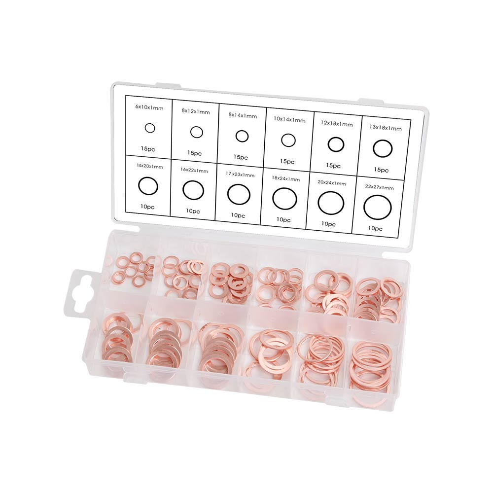 Coffret de 150 joints cuivre pour vis de décharge d'huile.