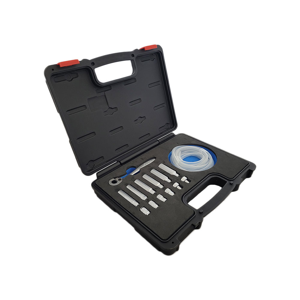 Convient pour la purge des freins et de l'embrayage hydraulique sans démonter les roues. Ce set comprend des clés de 7- 8 - 9 - 10 - 11- 12mm.