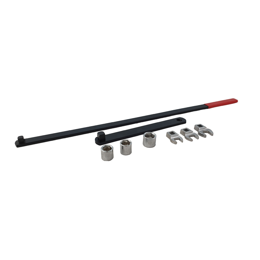 Grâce à l'extension qui peut être réglée sur 8 positions différentes, il est beaucoup plus facile d'atteindre les endroits étroits où la courroie trapézoïdale passe. Ce set comprend des capuchons extra courts et des inserts dans les tailles les plus courantes, ce qui le rend adapté à presque tous les véhicules.
