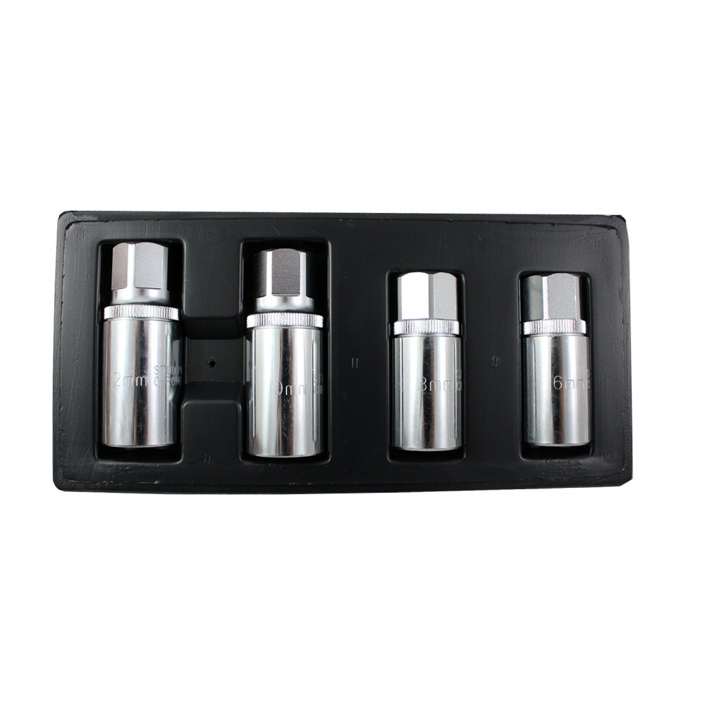 Coffret de 4 extracteurs de goujons. Vous placez cet extracteur de goujons au-dessus du goujon et desserrez le goujon à l’aide d’une clé à cliquet de 1/2”.