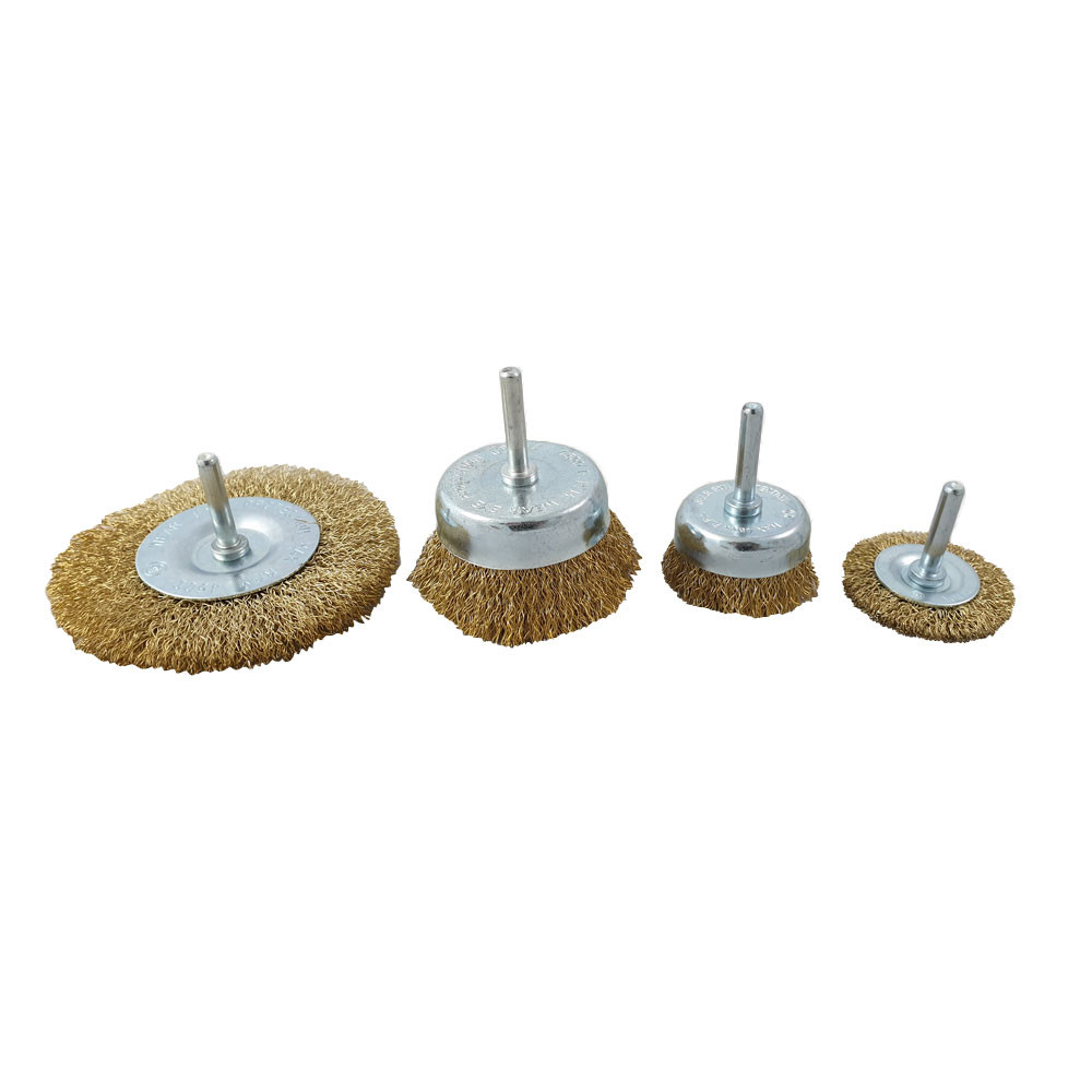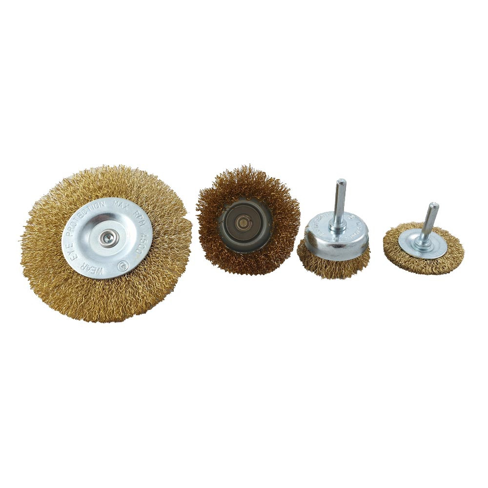 Jeu de 24 brosses métalliques circulaires à fils ondulés et laitonnés, pour éliminer rouille, peinture, calamine et dépôts incrustés.