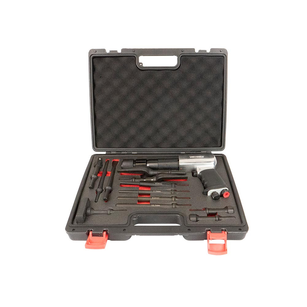 Le set de marteaux burineurs 10 pièces est à entraînement pneumatique.