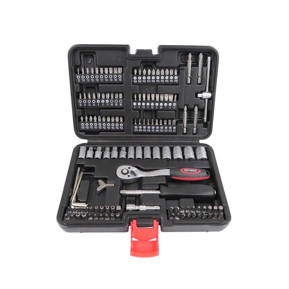 Jeu de douilles professionnelles 1/4 en acier vanadium poli et chromé. Le jeu contient 130 outils et est conforme aux normes DIN.