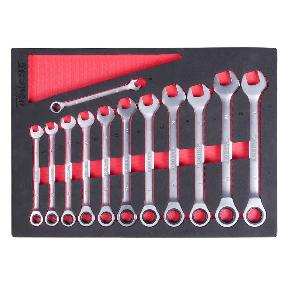 Ce jeu de clés polygonales à cliquet contient 12 clés polygonales à cliquet :