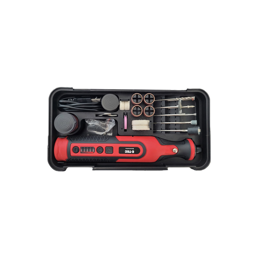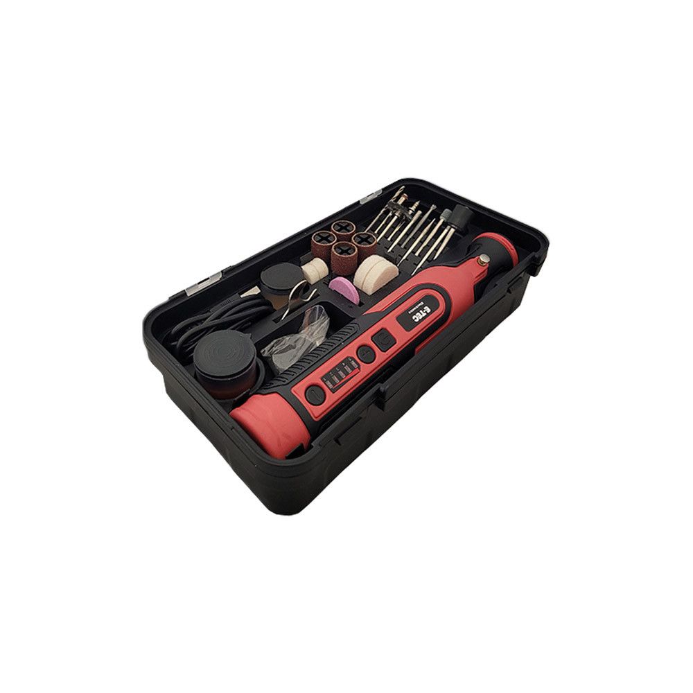 Cet ensemble d'outils alimentés par batterie comprend 50 accessoires. Le multitool portable et léger est rechargeable via USB-C et dispose d'une lumière LED.