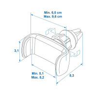 Deze universele smartphonehouder is ontworpen voor eenvoudige bevestiging aan het ventilatierooster van je voertuig. Dankzij het compacte en stevige ontwerp blijft je toestel veilig op zijn plaats, zelfs tijdens hobbelige ritten. De houder is geschikt voor vrijwel alle smartphones en zorgt voor een comfortabele en veilige kijkpositie tijdens het rijden.