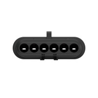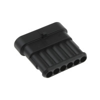 Connectorbehuizing voor AMP Superseal 1.5 in 6-polige uitvoering, geschikt voor mannelijke contacten. Ontworpen voor draad-naar-draad verbindingen en kabelmontage in vrijhangende toepassingen.