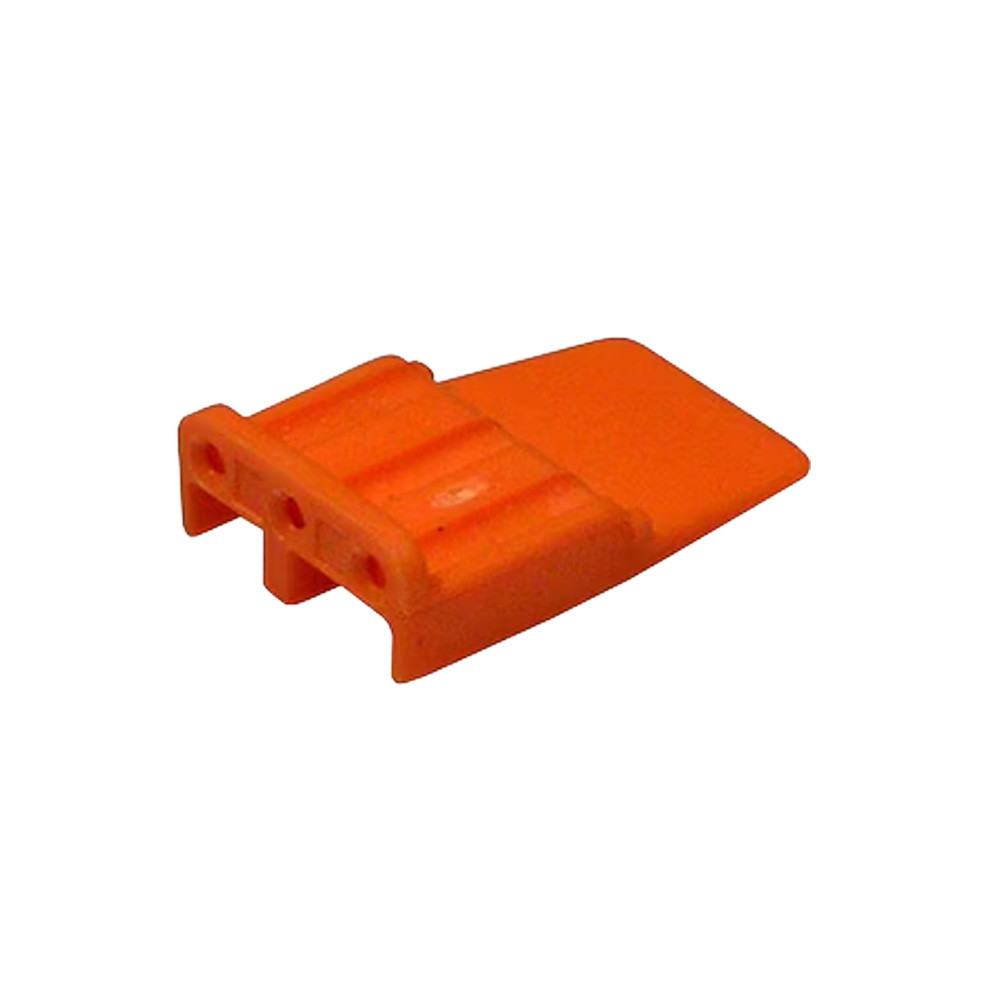 Stekkervergrendeling voor Deutsch DTM06-connectoren in 3-polige uitvoering, ontworpen als secundaire vergrendeling voor een veilige en stabiele verbinding. Gemaakt van stevig PBT-materiaal en uitgevoerd in oranje voor een duidelijke herkenning.