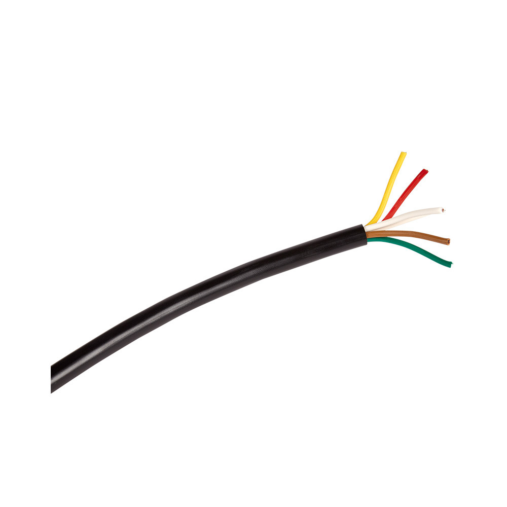 Compacte kabel met 5 aders van 0.75mm², geschikt voor lichte elektrische toepassingen in voertuigen en aanhangers. Wordt geleverd op een rol van 50 meter, ideaal voor efficiënte installatie en professioneel gebruik.