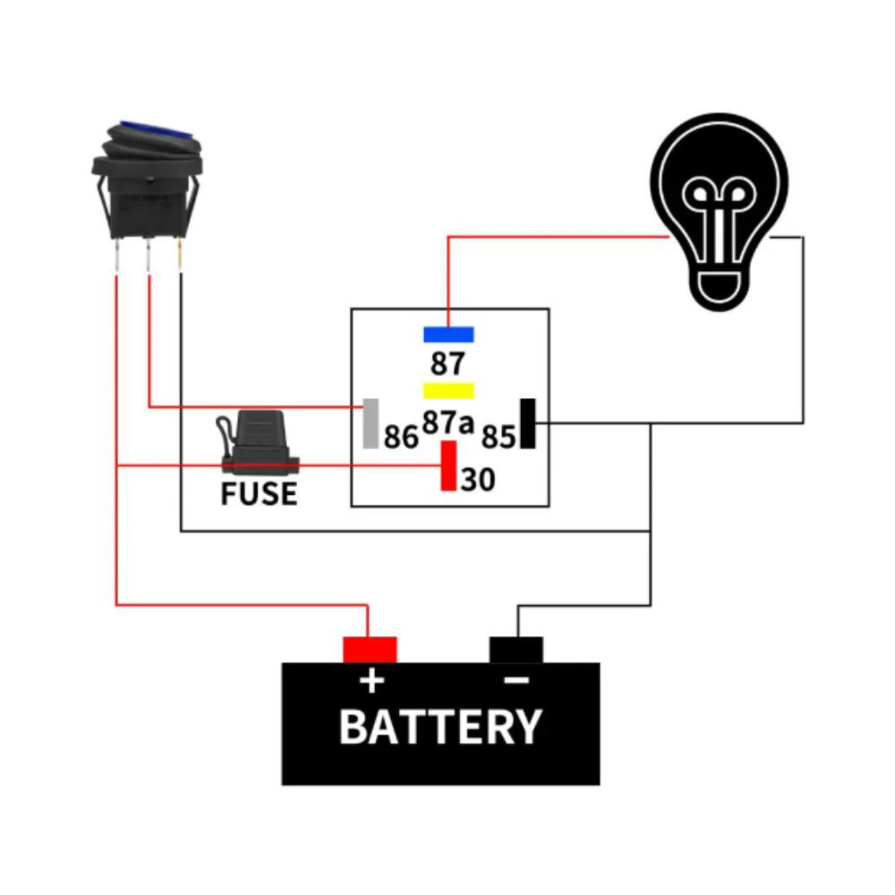 De triggerschakelaar van het heavy-duty relais is geschikt voor 12V DC (max. 14V DC) met een capaciteit van 30/40A (40A NO, 30A NC) en een spoelspanning van 12V DC. De geoptimaliseerde draaddiktes van 12AWG en 16AWG zorgen voor een efficiënte stroomtoevoer voor zowel apparaten als schakelaars.