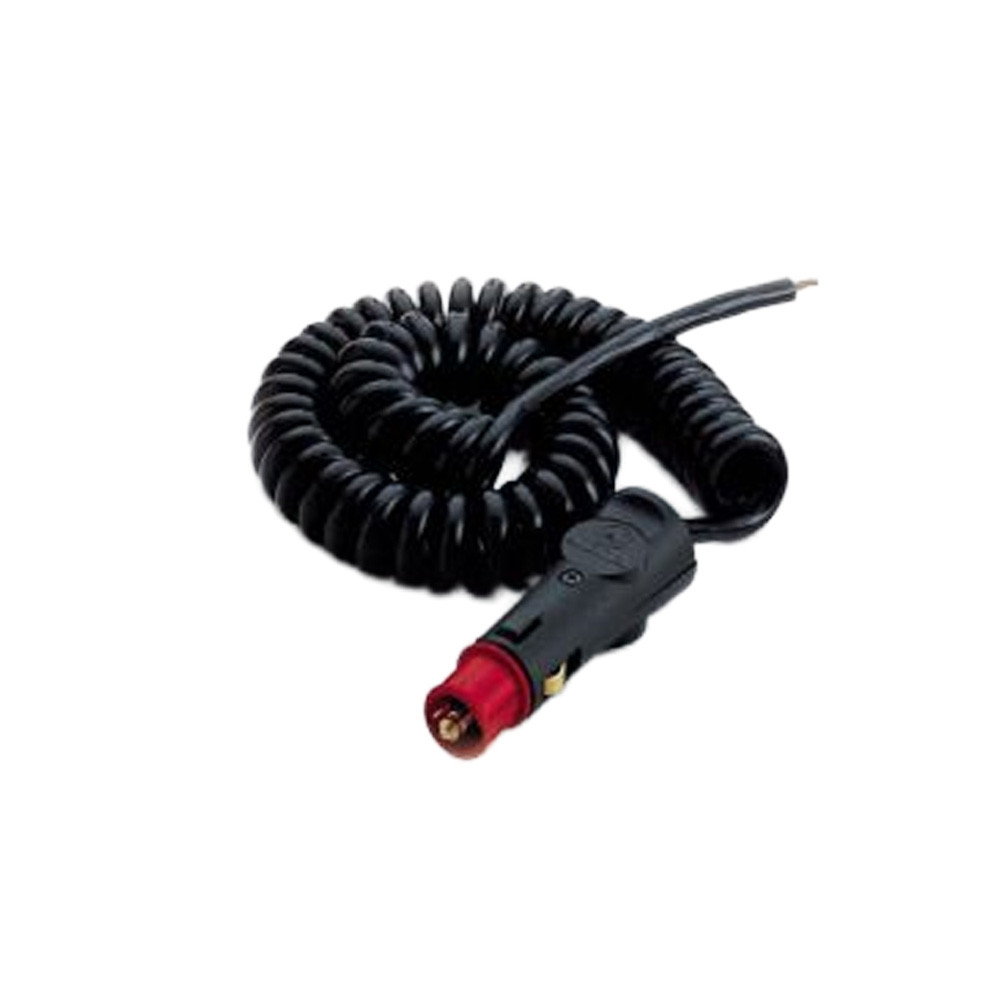 Stekker met geïntegreerde sigarenaansteker en spiraalkabel, ideaal voor het aansluiten van 12V-accessoires in voertuigen. Ontworpen voor een veilige en betrouwbare verbinding met extra flexibiliteit dankzij de spiraalvormige kabel.