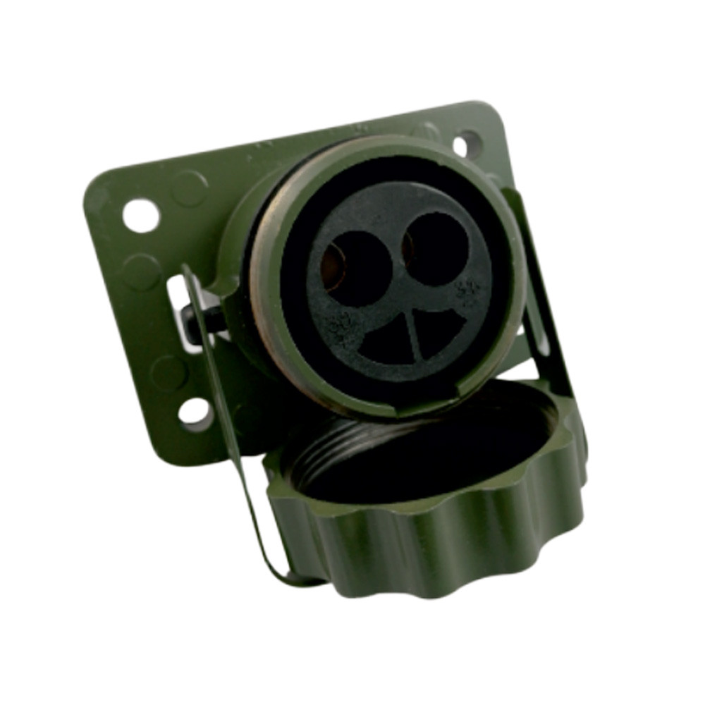 Compacte 2-polige NATO-stekdoos voor veilige en betrouwbare verbindingen in zware toepassingen. Duurzaam uitgevoerd en geschikt voor professioneel gebruik onder alle omstandigheden.
