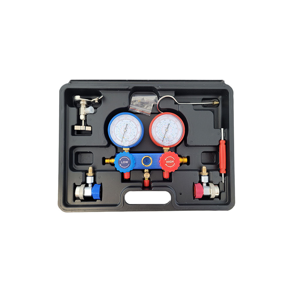 2-weg test armatuur voor werkzaamheden en diagnose aan aircosystemen voor R407C, R404A, R134A.