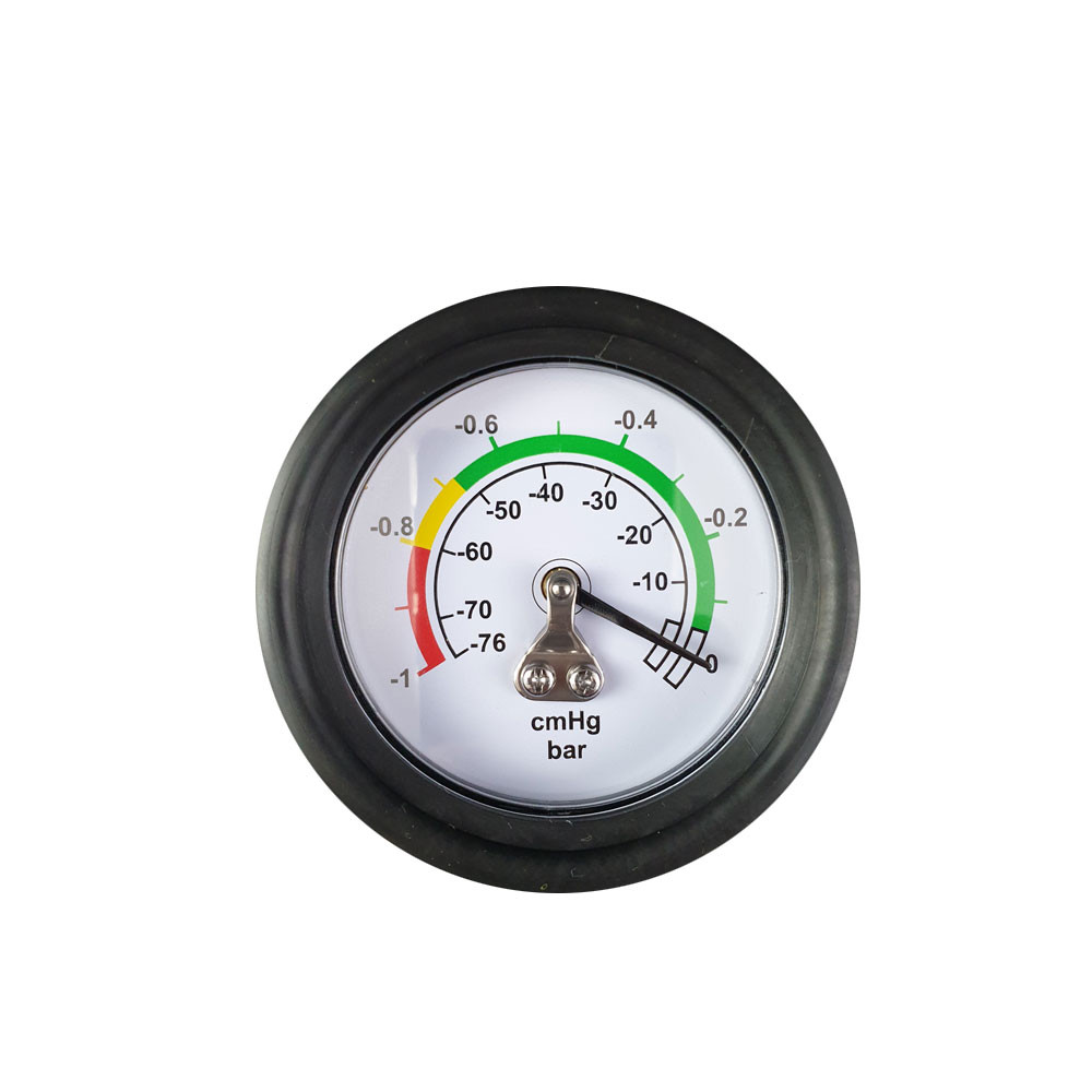 Voorzien van een speciaal ventiel waardoor de opgebouwde onderdruk binnen het koelsysteem wordt gehouden. Manometer voorzien van rubber behuizing ter bescherming.