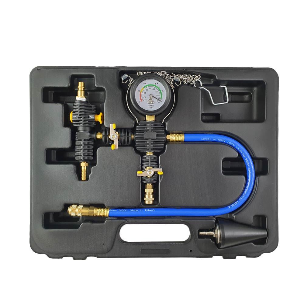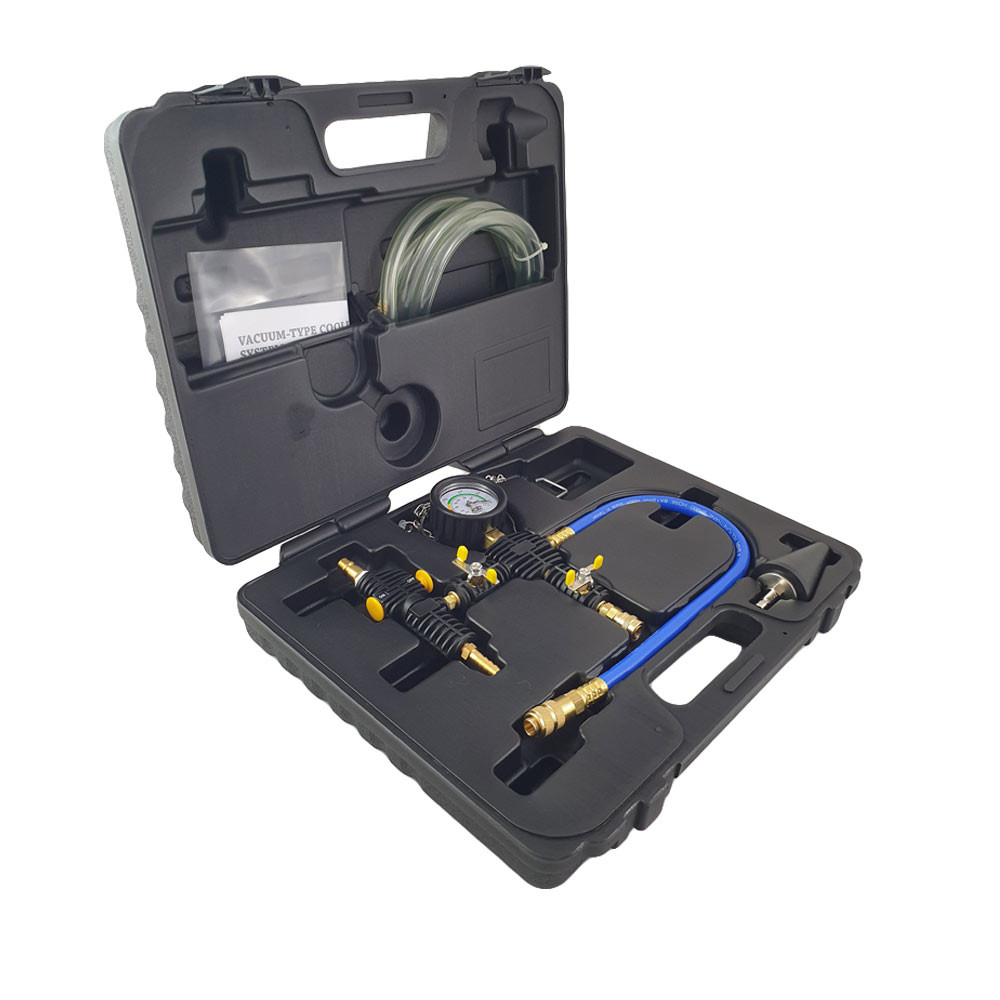 Voor het probleemloos en zonder luchtbellen vullen van het koelsysteem en gelijktijdig het testen op lekkage.