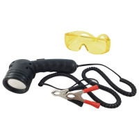 Bij werkzaamheden met de UV-lektestlamp moet beslist een veiligheidsbril worden gedragen!