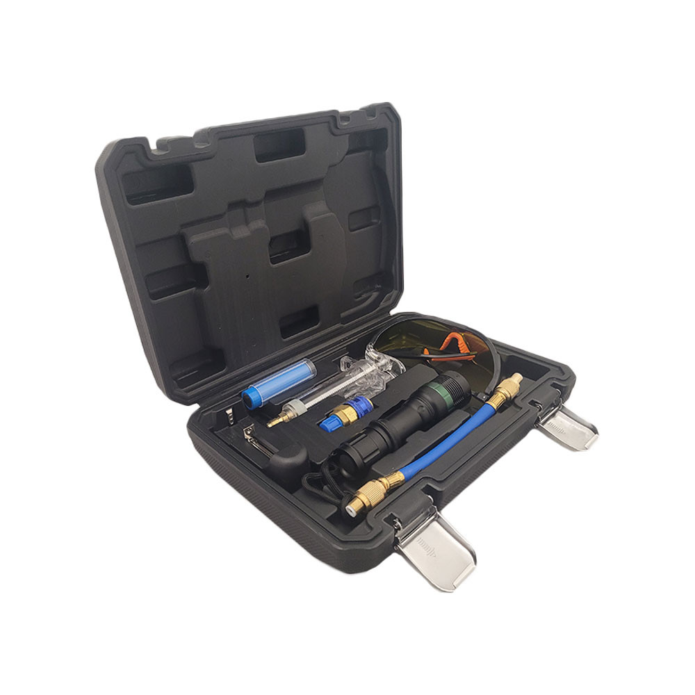 Met behulp van deze set zijn zelfs de kleinste lekkages eenvoudig op te sporen. De set is geschikt voor lekdetectie van airco, koelsystemen, motorolie (diesel en benzine), transmissieoliesystemen en stuurbekrachtigingssystemen.