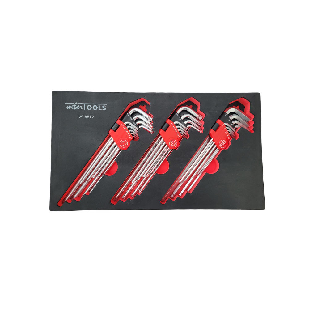 Haakse sleutels extra lang Torx - Resistorx - Inbus 25-delig