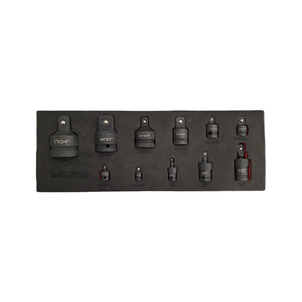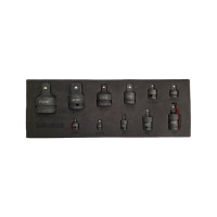 Deze set krachtadapters is vervaardigd uit Chroom-Molybdeen staal en zwart gefosfateerd voor levenslang gebruik met de slagmoersleutel. Afmetingen van de inlegfoam zijn 395x144x30 mm.