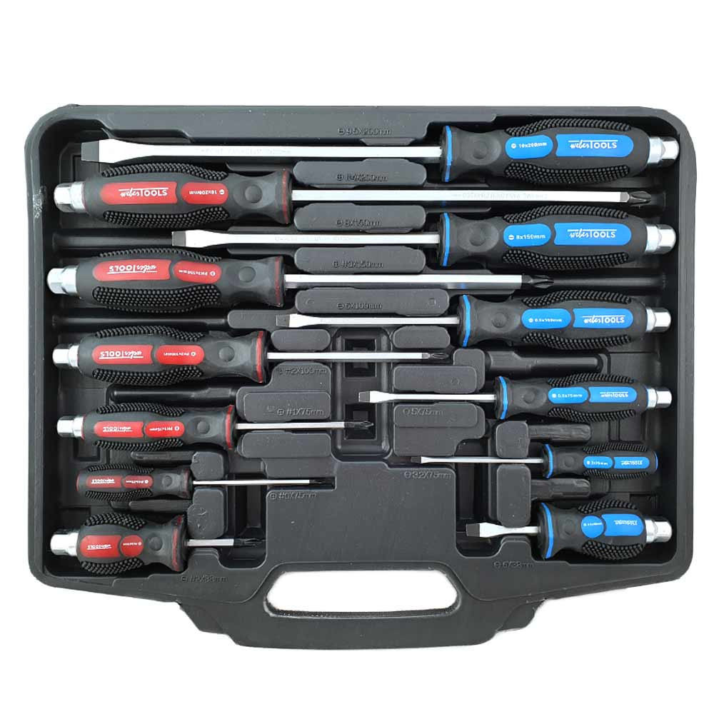 12-Delig schroevendraaierset van Weber-Tools, de schroevendraaiers beschikken over een magnetische tip en zijn gemaakt van Chrome Vanadium. Door de zeskant aansluiting kunt u met een moersleutel of in combinatie met een zeskantdop en ratel gemakkelijk de schroeven aandraaien. Ook te gebruiken met een hamer.