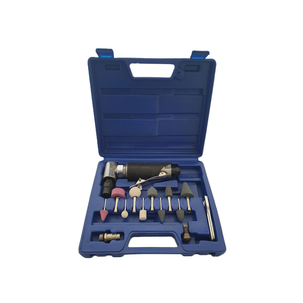 Krachtige haakse luchtdremel met 10 verschillende slijpstenen.