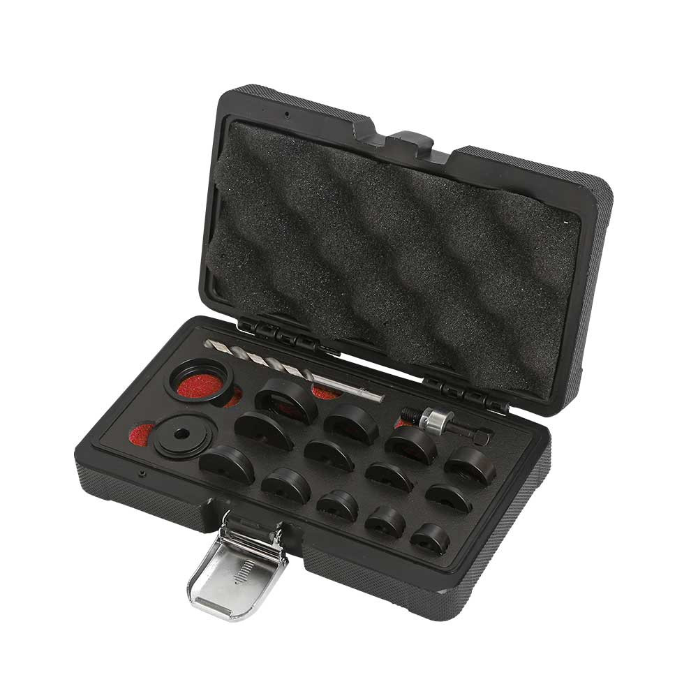 Dit gatenstans set voor parkeersensoren is de precieze en schone manier om gaten te maken om sensoren op vervangende bumpers te installeren. Ontworpen om een ??gat in de bumper of het spatbord te ponsen zonder de lak te beschadigen. Gebruiksgemak gecombineerd met een grote verscheidenheid aan maten. Met dit set kunt u gaten ponsen in plastic bumpers met een dikte tot 5 mm en bevat een 5/16 HSS-boor.