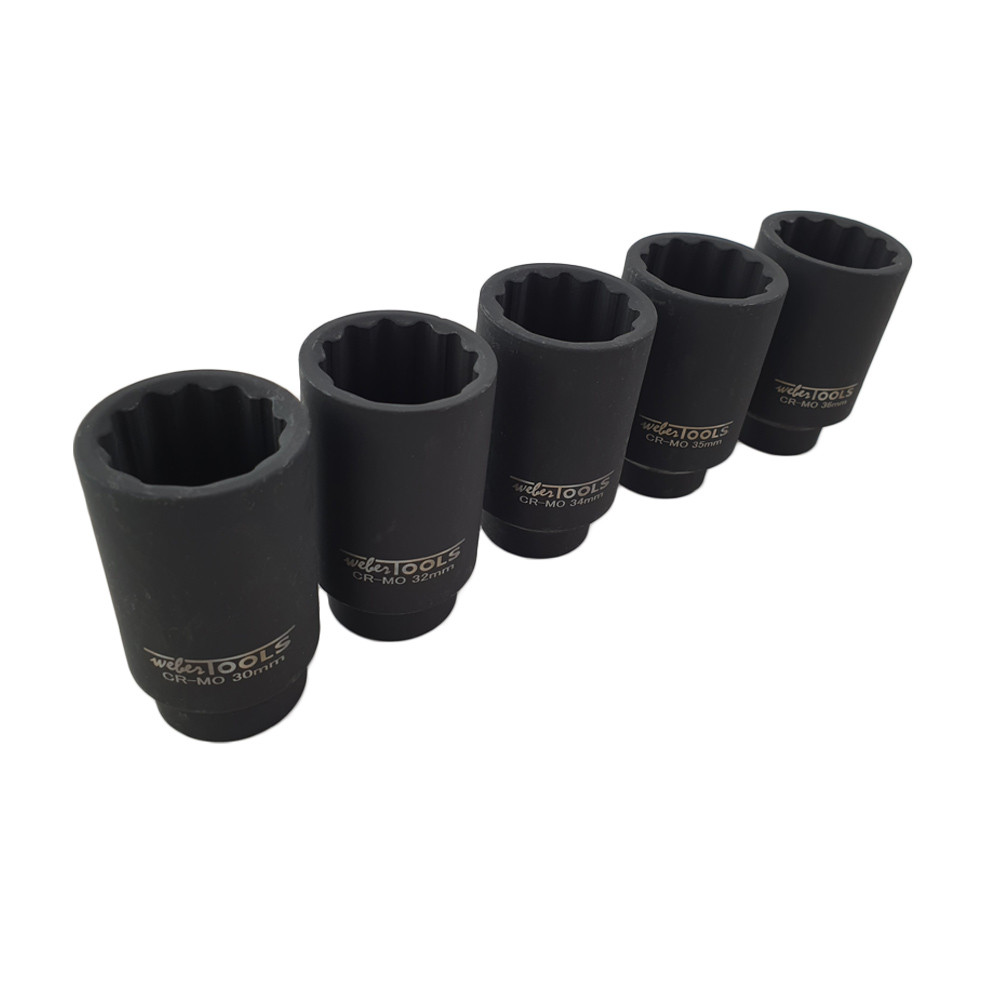 Doppenset voor het demonteren van de 12-kant moeren op de aandrijfas en wielnaaf. Gemaakt van Chrome Molybdenum.