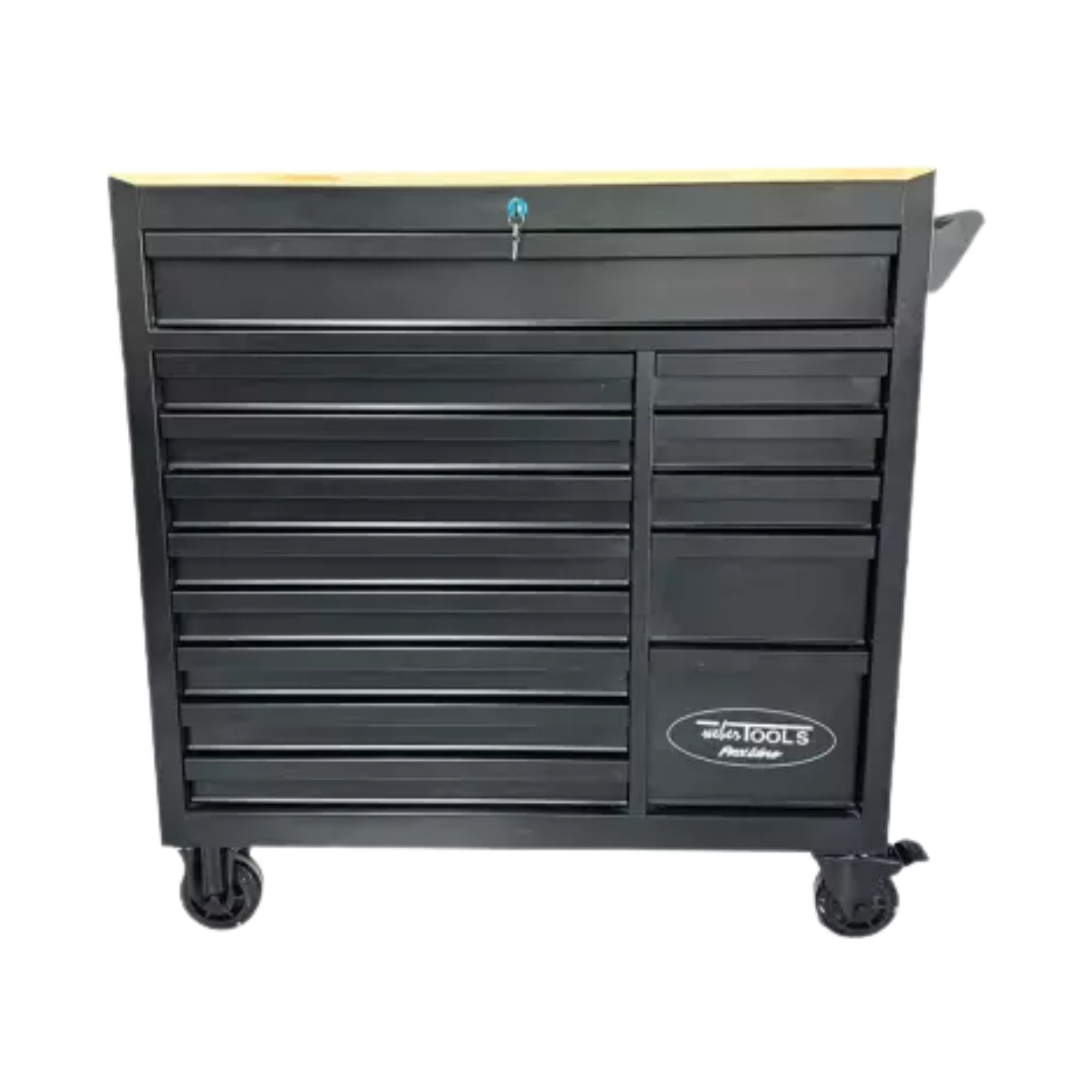 De gereedschapswagen is voorzien van een ladeblokkeersysteem en volledig afsluitbaar doormiddel van de twee meegeleverde sleutels.