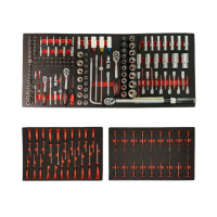 Deze robuuste gereedschapswagen is volledig gevuld en beschikt over 14 ruime laden: 11 laden zijn gevuld met hoogwaardige gereedschappen, overzichtelijk gesorteerd in passende olie- en benzinebestendige foam modules. 3 extra laden zijn beschikbaar voor extra opslag voor materialen, gereedschappen en onderdelen. Zo houdt u al uw gereedschap overzichtelijk en altijd binnen handbereik.