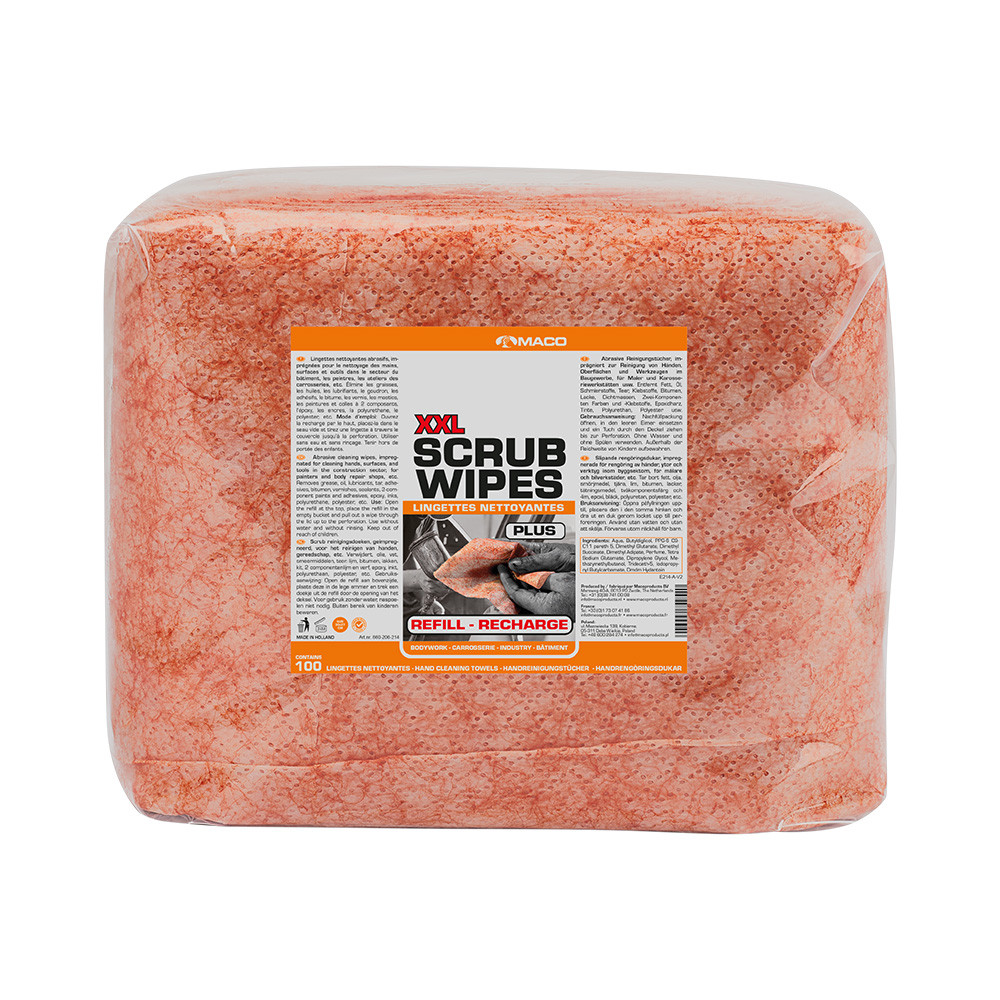 De ScrubWipesExtreme navulling bevat 100 krachtige handreinigingsdoeken van 270 x 300 mm, speciaal ontwikkeld voor het verwijderen van zware industriële vervuilingen. Elke doek is geïmpregneerd met een effectieve citrusformule en voorzien van een eenzijdige blauwe scrublaag die moeiteloos olie, vet, smeermiddelen, teer, bitumen en lijmresten verwijdert. Ideaal voor gebruik in garages, werkplaatsen en op locatie. Deze navulling is compatibel met de ScrubWipesExtreme dispenser en biedt een betrouwbare oplossing voor intensief professioneel gebruik.