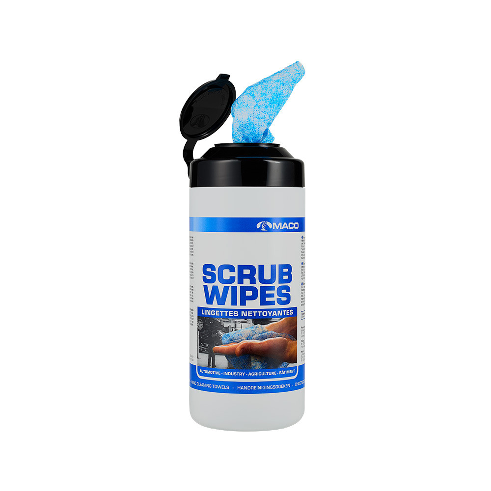 ScrubWipesCitrus zijn krachtige handreinigingsdoeken van 200 x 300 mm, geïmpregneerd met citrus reinigingsvloeistof en voorzien van een blauwe scrublaag aan één zijde. Deze doeken zijn speciaal ontwikkeld voor het verwijderen van de zwaarste automotive vervuilingen zoals olie, vet, smeermiddelen, teer, bitumen en sealants. Dankzij hun compacte formaat en effectieve werking zijn ze ideaal voor gebruik in garages, werkplaatsen en onderweg, waar water niet beschikbaar is. De verpakking bevat 50 doeken en biedt een snelle, hygiënische en efficiënte reinigingsoplossing.
