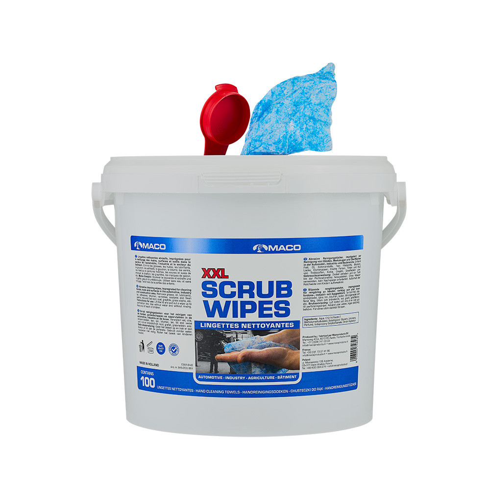 ScrubWipesCitrus zijn eenzijdig geïmpregneerde handreinigingsdoeken van 270 x 300 mm, voorzien van een blauwe scrublaag en doordrenkt met krachtige citrus reinigingsvloeistof. Deze doeken zijn speciaal ontwikkeld voor het verwijderen van de zwaarste automotive vervuilingen zoals olie, vet, smeermiddelen, teer, bitumen en sealants. Dankzij hun robuuste structuur en effectieve formule zijn ze ideaal voor gebruik in garages, werkplaatsen en mobiele toepassingen waar water niet beschikbaar is. De verpakking bevat 100 doeken en biedt een snelle, hygiënische en efficiënte reinigingsoplossing.
