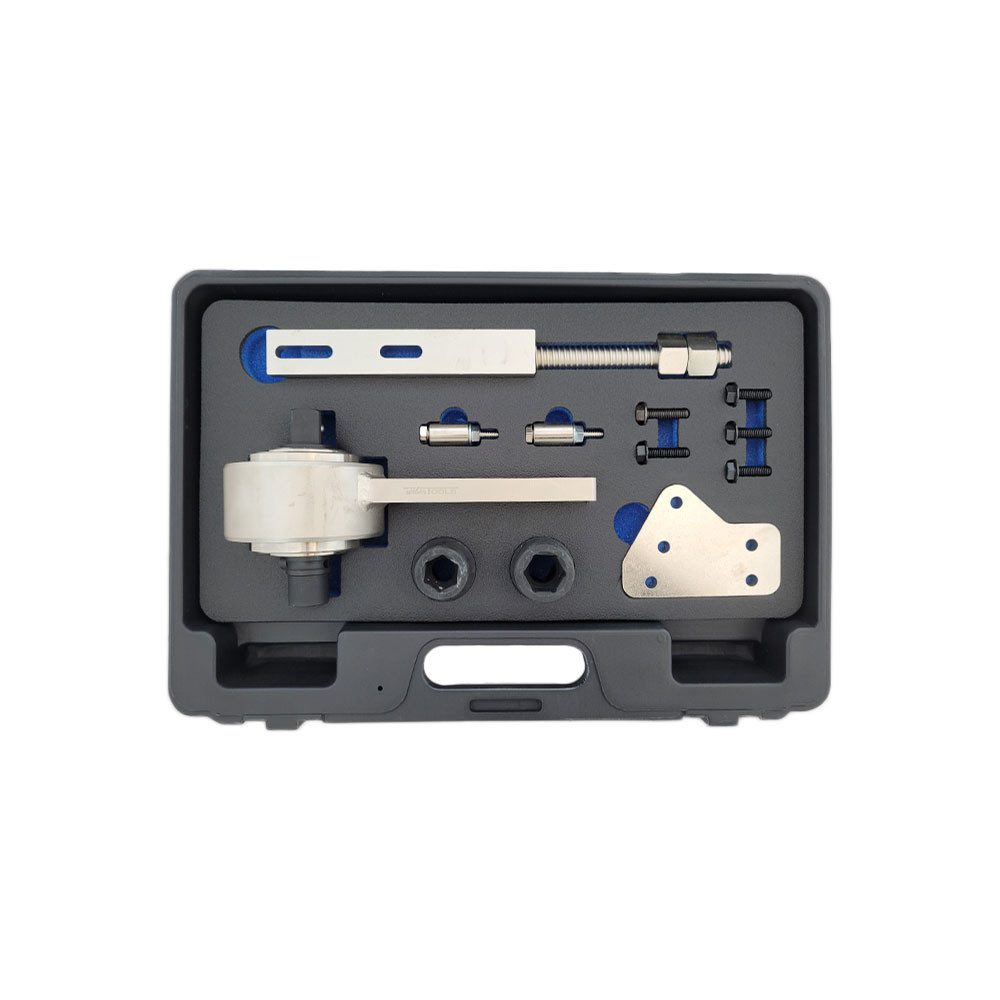 Speciaal gereedschap om de poeliebout van de krukas aan te draaien tot het juiste draaimoment en de juiste hoek.