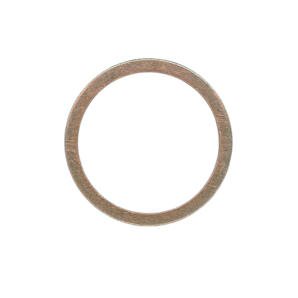 De dichting heeft een afmeting van 22x27x1,5mm en is vervaardigd uit koper.