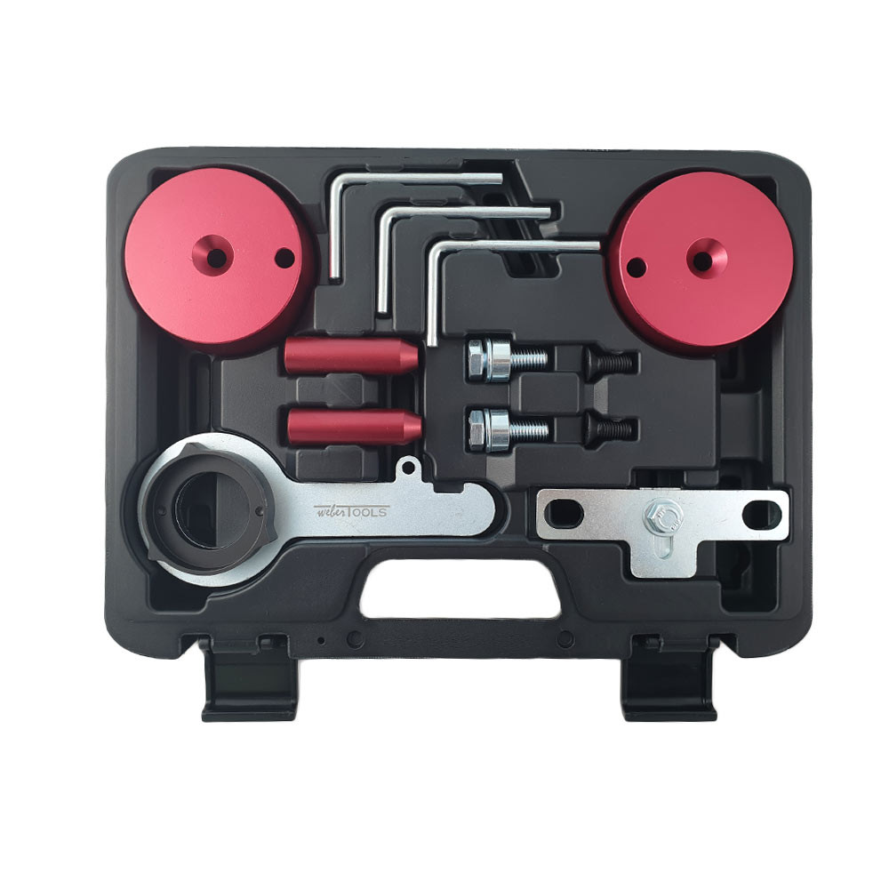 Volledige set: incl. krukas uitlijngereedschap, vliegwielblokkeerder en distributieriem montagegereedschap.