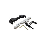 Dit set is bedoeld om de timing van de nokkenas te controleren en af te stellen of de distributieketting te verwijderen en te vervangen. Het set bevat tevens een VANOS-plaat dat nodig is om de VANOS-sensor in de juiste stand te zetten en uitlijngereedschap om de balansas in te stellen.