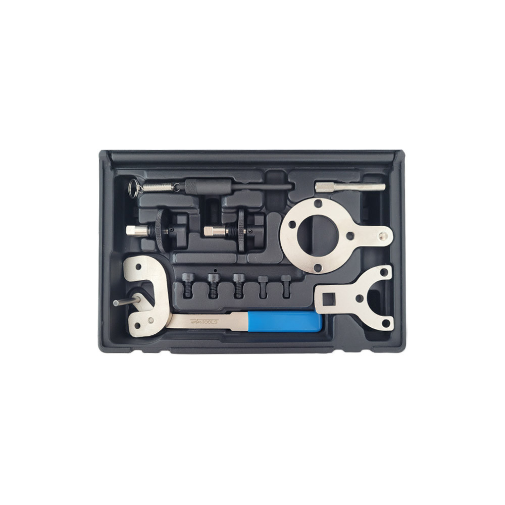 Met deze set kunt u de nokkenasdistributie controleren en afstellen, de nokkenketting demonteren en monteren en volledige motorrestauraties uitvoeren terwijl de correcte klepdistributie wordt gehandhaafd.