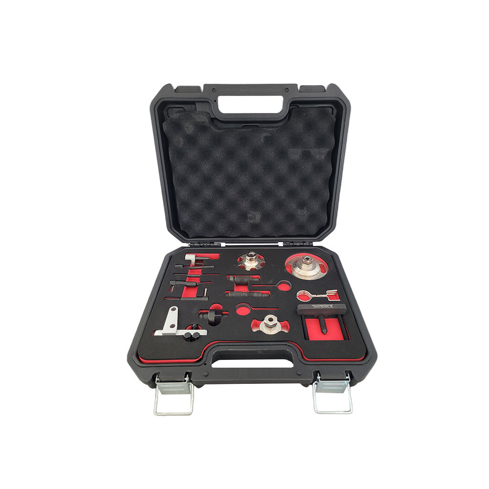 Bevat speciale adapters voor het draaien en positioneren van de krukas ten opzichte van de cilinderkop.