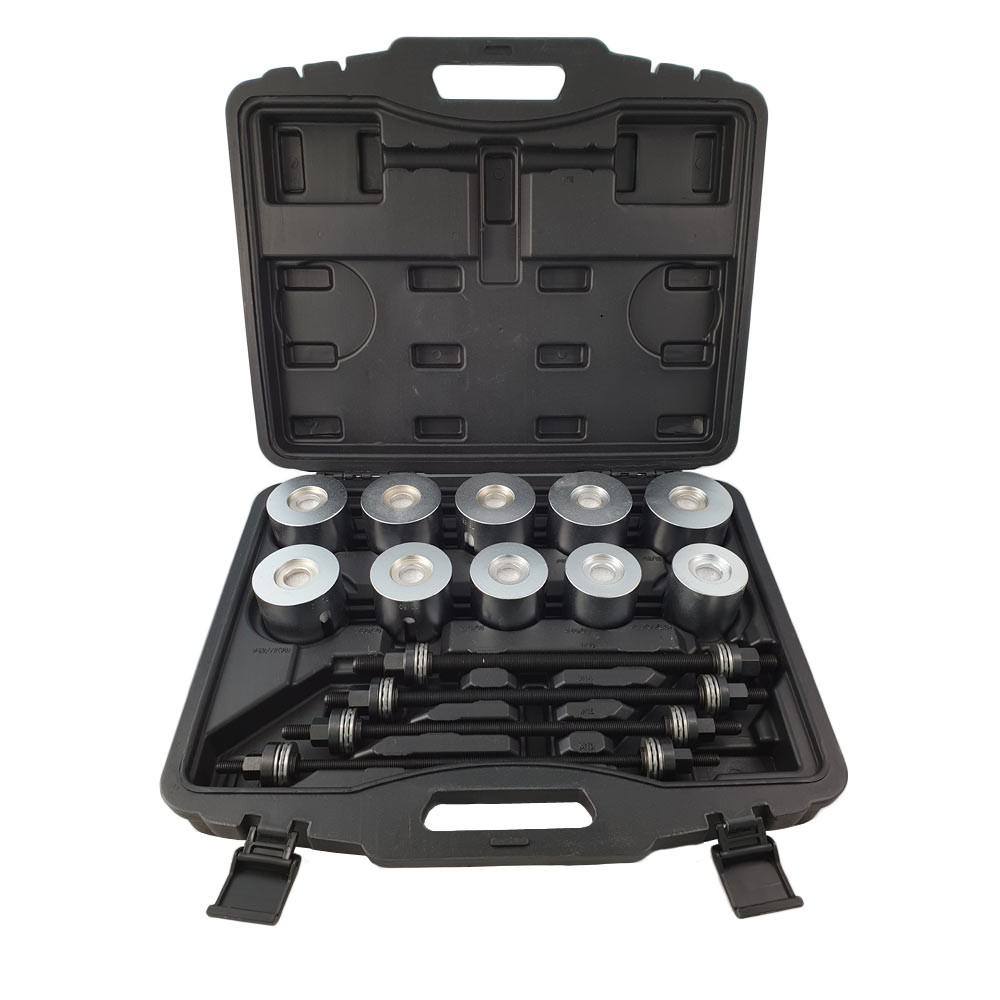 Universele gereedschapsset voor het uittrekken en indrijven van: silentlagers, hydrolagers, bussen, kogellagers, simmerringen, rubber lagers enz.