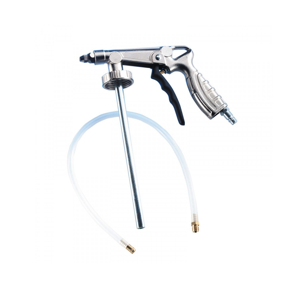 Eenvoudig te gebruiken spuitpistool in set, inclusief speciale slang. Ontworpen voor het aanbrengen van bodem- en steenslagbescherming, evenals holle ruimte bescherming uit 1L pistoolblik met perslucht. Ideaal voor professioneel gebruik en snelle toepassing.