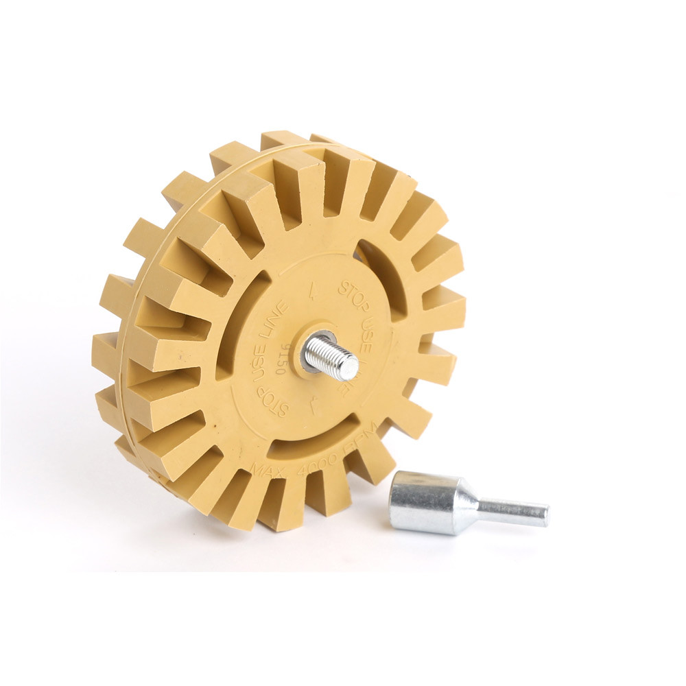 Verwijder stickers, folie, belettering, etc. van voertuigen in combinatie met een boormachine.